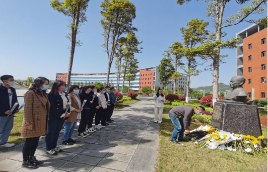 祭扫活动现场,全体人员在王布君院长、陈荣殿教授雕塑面前集中,主持人讲解了两位先贤的生平事迹以及为我国教育、医疗事业所做出的贡献,为表达对两位先贤崇高的敬意和深切的缅怀,全体人员向两位先贤深深三鞠躬,并敬献鲜花,默哀致意。接下来是参观校史馆,通过讲解员的讲解,重温了学校建校七十五年以来的波澜壮阔的历史。