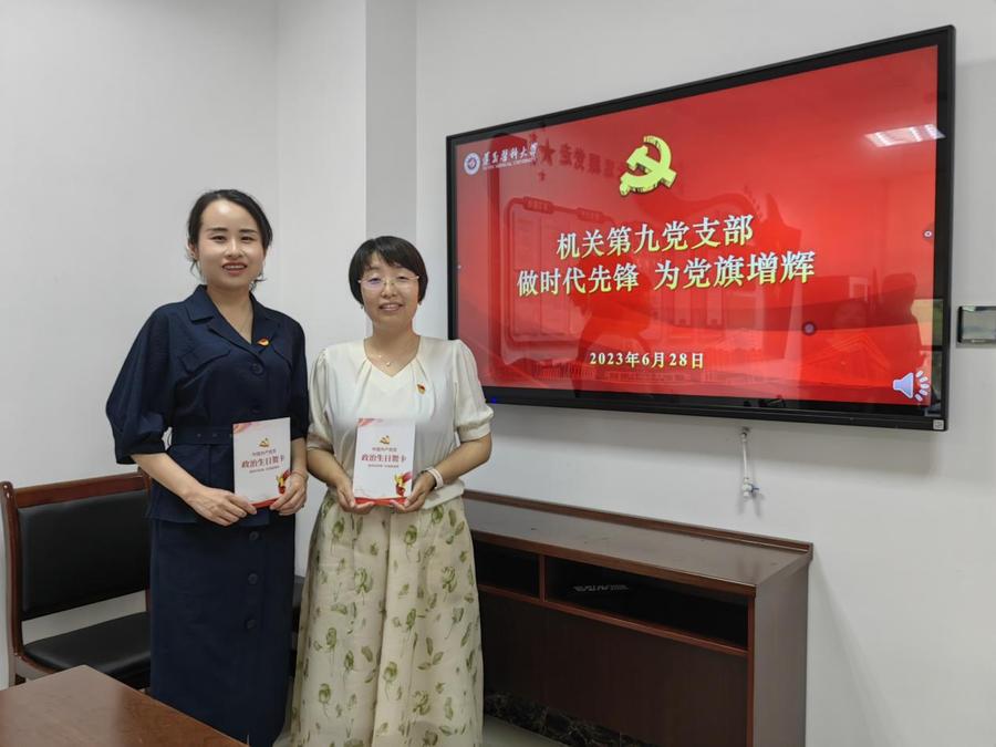 最后,支部为吴珊珊、赵旭娟两位党员同志过“政治生日”,并颁发生日贺卡。(审核:一审蒋熠、粟向军,二审刘芳宇,三审杨清玉;撰稿:李雪;摄影:李雪)