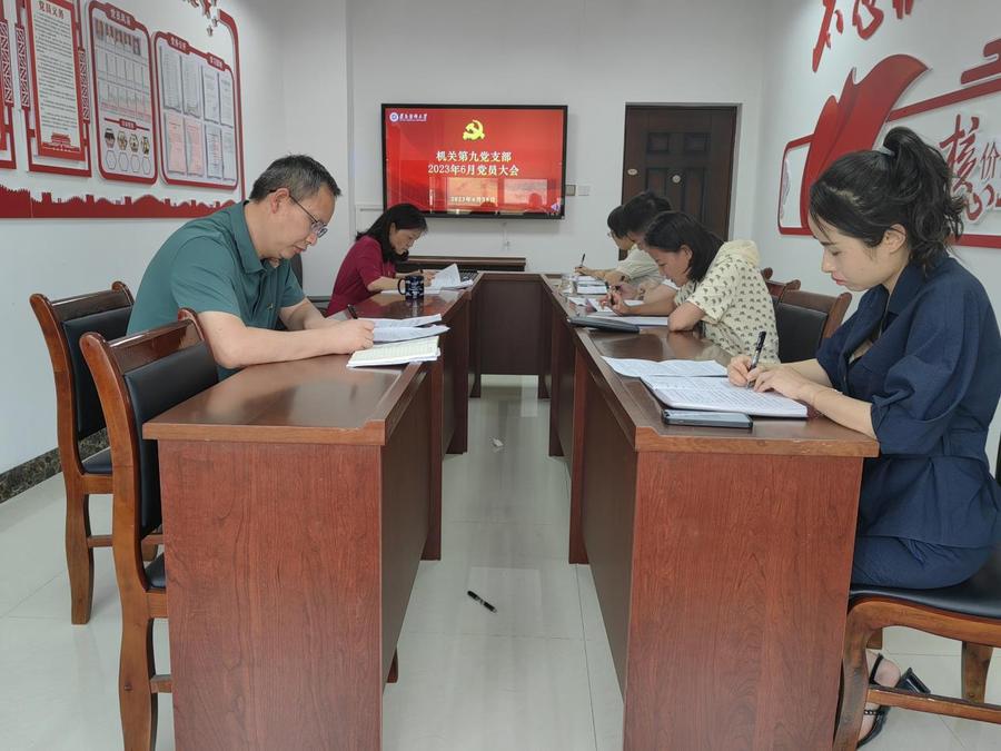 6月28日下午,机关第九党支部在新蒲校区行政楼427党员活动室召开党员大会,会议由支部书记蒋熠主持。