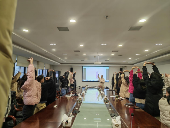 活动最后,孟丹医生带领大家学习了健身气功“八段锦”,并指导了起势,转身、伸手、抬腿等动作,一招一式规范到位。在场的师生纷纷表示,本次活动既让他们了解了中国传统文化的博大精深,增加了对中华优秀传统文化的热爱,又丰富了自身的精神文化生活,是非常有意义的一次活动。(审核:一审赵旭娟、蒋熠,二审刘芳宇,三审杨清玉;撰稿、摄影:李雪)