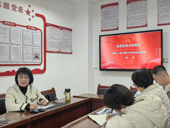 杨艳同志以《坚持党的全面领导》为题目进行党课宣讲,分别从历史的必然选择、社会发展的必然选择、人民的必然选择三个方面阐述了中国为什么要坚持中国共产党的领导,并结合贵州的历史、地理、气候以及黄金十年发展情况,为支部的同志们带来了一场生动的党课宣讲。随后,支部集体学习了《中国共产党统一战线工作条例》、全国统战部长会议以及全省统战部长会议精神。