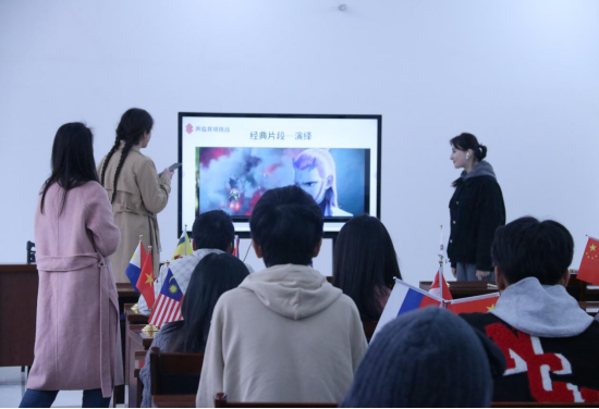 活动当天上午,学院付蛟蛟老师以《“哪吒”中的中国文化》为题,从《哪吒1》电影开始,讲述了关于哪吒的中国神话传说,重点讲解了中国人的宗教信仰,给留学生们留下了深刻印象。同时,还选取了电影中的精彩片段邀请留学生们组队演绎。