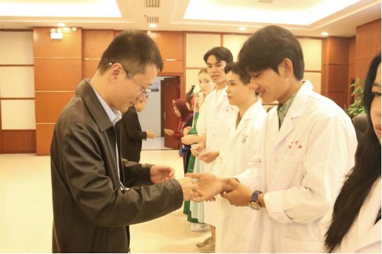 徐林副校长代表学校向2025级国际新生的到来表示热烈欢迎,并介绍了学校悠久的办学历史和国际化发展成果。他希望同学们牢记“明德笃学,求是致用”的校训,珍惜时光、勤奋学习,努力成长为具有高尚医德和扎实专业能力的医学人才,争做中外文化交流的友好使者。