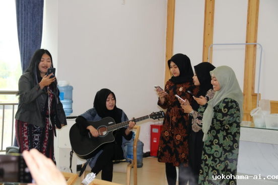 结束参观回到校园,师生欢聚一堂,国际学生们用欢快的民族歌舞庆祝宋干节,表达他们对学校的感谢和美好祝福。