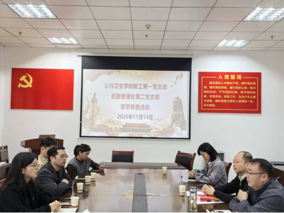 后勤管理处党总支副书记付开远指出,联学联做是桥梁,更是责任;共同发展是使命,更是担当,希望两个支部在高党建引领高质量发展方面互促互进。公共卫生学院党委委员、副院长刘俊表示,本次两个支部开展联学联做活动,是搭建互学互鉴平台、凝聚发展合力的重要举措,我们要以此次活动为契机,心往一处想、劲往一处使,在互学互鉴中凝聚共识。