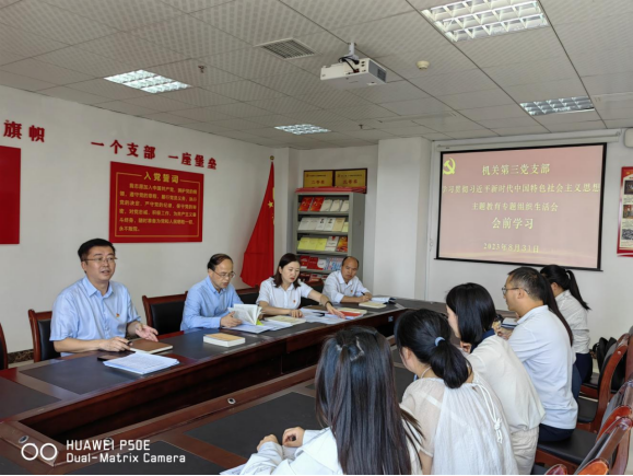 8月31日上午,机关第三党支部在行政楼801党员活动室,开展学习贯彻习近平新时代中国特色社会主义思想主题教育专题组织生活会会前集中学习。学校党委书记何志旭,党委委员、党委组织部长、统战部长郭宇亮以普通党员身份参加学习。本次集中学习由统战部副部长、机关第三党支部副书记李菲主持。