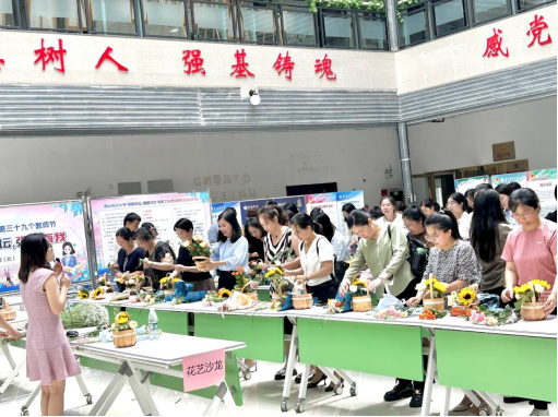 芬芳九月,礼颂师恩。本次关爱教职工心理健康活动包括艺术插花体验、心理功能室参观体验、心理沙盘体验、心理宣泄体验、心理测试等心理系列活动。活动现场,学校党委委员、副校长赵继锋强调要积极关注教职工心理健康状态,号召鼓励大家参与、体验各种心理活动。插花活动现场,在被鲜花包围的大厅,花艺师向大家介绍了常见的花种和插花基本花型。在花艺师的指导下,教师们细致修剪花材,花艺造型或格调高雅,或简约别致,现场萦绕着阵阵花香与笑语。此外,教师们还参观了心理健康辅导中心二楼的心理功能室,阅览心理书籍,体验心理放松设备等。
