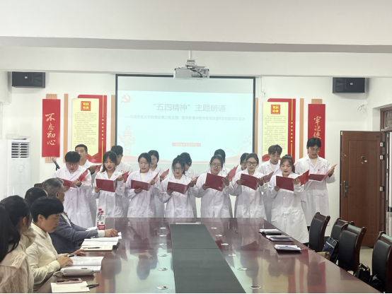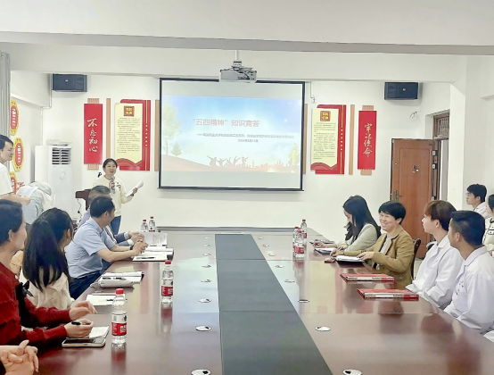 此次主题党日活动采取理论宣讲、知识竞答和诗词朗诵的方式展开。在理论宣讲环节,马克思主义学院思想政治教育专业硕士研究生秦朝燕、刘令以《弘扬五四精神,争做有为青年》为主题开展了“五四精神”主题宣讲,系统讲解了“五四精神”的内涵、当代价值及践行要求。在知识竞答环节,全体师生积极参与,进一步深化了对“五四精神”的内涵和价值的理解。最后,医学影像学院学生朗诵了自创诗歌《五四精神,闪耀遵医》,表达了传承“五四精神”的决心。