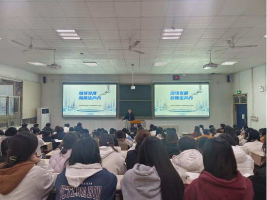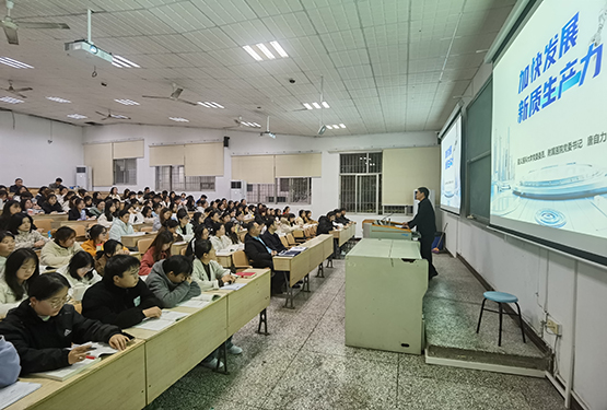 唐自力围绕事关全局的国之大者、创新质优的质态特征、统筹推进的系统工程三个方面,结合党的十一届三中全会以来改革开放和社会主义现代化的伟大征程所取得的辉煌成就,对为何要发展新质生产力、如何全面准确理解新质生产力的内涵、怎样推进新质生产力的发展工作、发展新质生产力所面临的机遇和挑战进行了全面系统讲解,以此帮助同学们更加全面、深刻地理解新质生产力的科学内涵,要求同学们努力为新质生产力蓄势赋能,积极为推进高质量发展彰显青年担当。