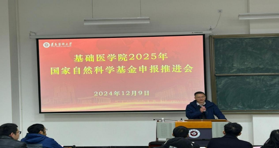 12月9日,基础医学院2025年国家自然科学基金申报第二次推进大会召开。学校党委副书记、校长龚其海,副校长、基础医学院院长徐林莅临指导工作,基础医学院党政领导班子成员、各科室负责人、学院基金评审组成员以及拟申报项目的100余名教师参会。会议由基础医学院副院长刘晖主持。