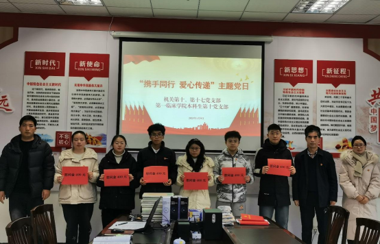 志愿服务是社会文明进步的重要标志,是基层社会治理的重要力量,为深入学习贯彻习近平总书记关于志愿服务的重要论述,大力弘扬志愿服务精神,1月9日上午,机关第十、第十七支部与第一临床学院本科生第十党支部在后勤综合楼继续教育学院405党员活动室联合开展“携手同行 爱心传递”主题党日活动。